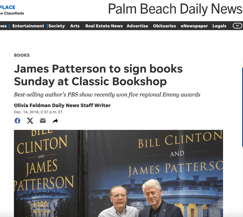 “James Patterson to sign books Sunday at Classic Bookshop“